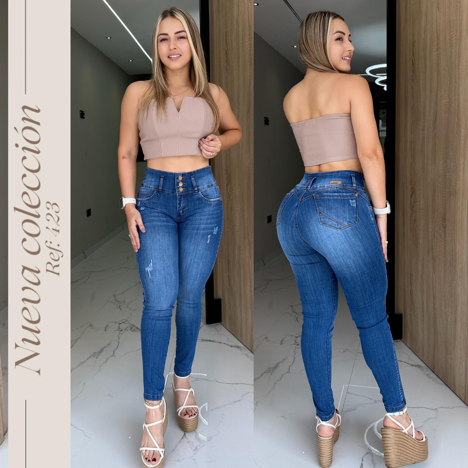 JEANS DAMA 3 BOTONES LEVANTA COLA REF:423