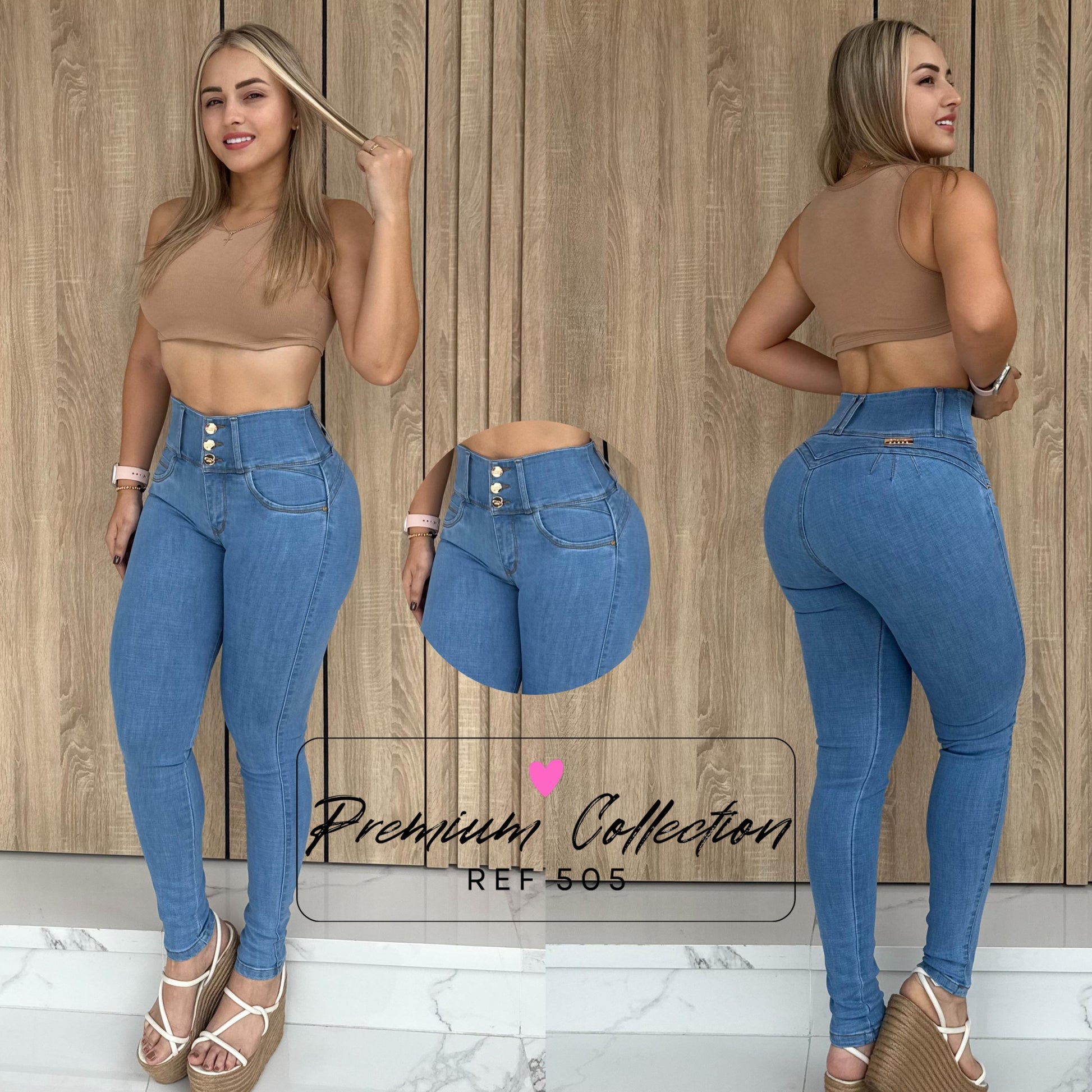 JEANS 3 BOTONES LEVANTA COLA SIN BOLSILLO REF:505