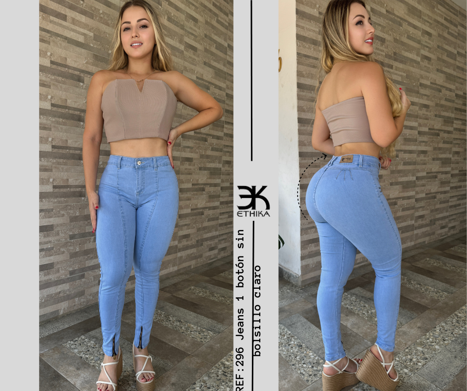 JEANS DE DAMA 1 BOTON LEVANTA COLA REF:296