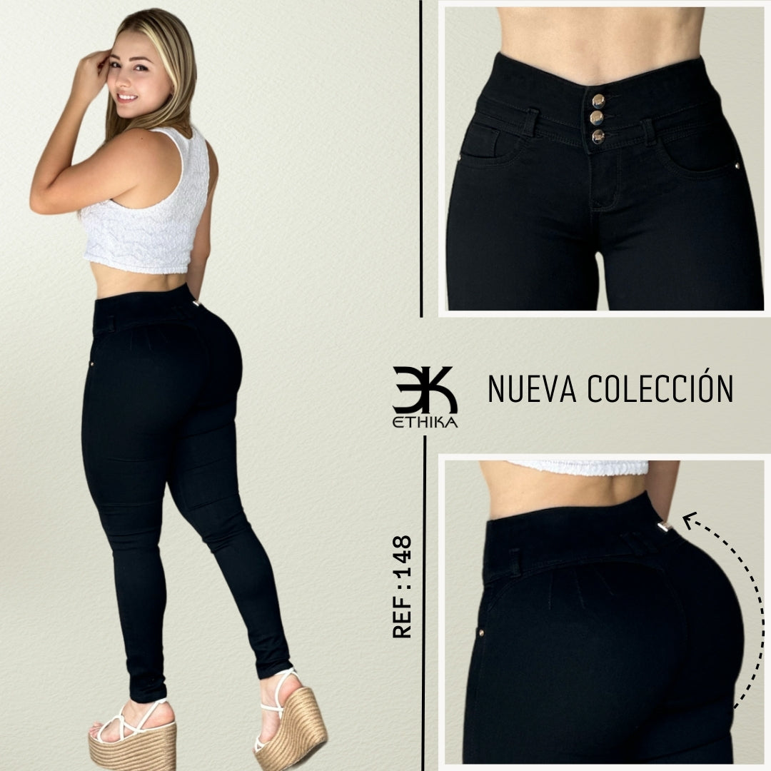 JEANS DAMA NEGRO DE 3 BOTONES SIN BOLSILLO RF:148